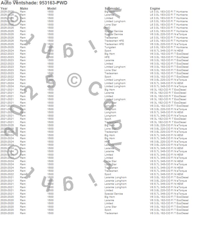 Below is an abbreviated list of applications for the Aeroskin LightShield Pro Hood Protector.1500, Ram, 2025, 2024, 2023, 2022, 2021, 2020