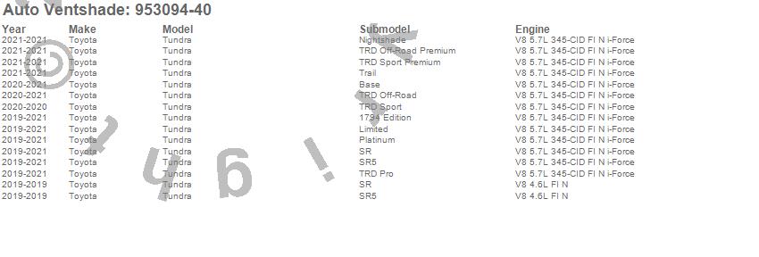 Below is an abbreviated list of applications for the Aeroskin LightShield Pro Hood Protector.Tundra, Toyota, 2021, 2020, 2019