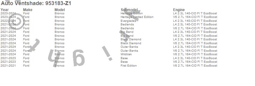 Below is an abbreviated list of applications for the Aeroskin LightShield Color-Match Hood Protector.Bronco, Ford, 2024, 2023, 2022, 2021