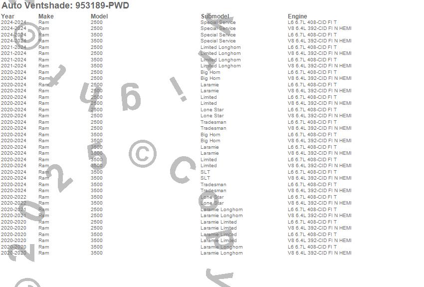 Below is an abbreviated list of applications for the Aeroskin LightShield Pro Hood Protector.2500, 3500, Ram, 2025, 2024, 2023, 2022, 2021, 2020