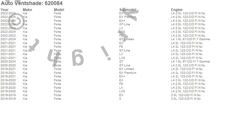 Below is an abbreviated list of applications for the Aeroskin Chrome Hood Protector.Forte, Kia, 2024, 2023, 2022, 2021, 2020, 2019