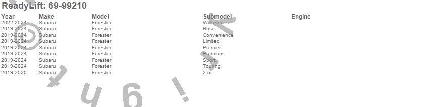 Below is an abbreviated list of applications for the SST Lift Kit.Forester, Subaru, 2024, 2023, 2022, 2021, 2020, 2019