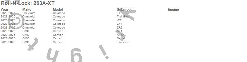 Below is an abbreviated list of applications for the Roll-N-Lock A-Series XT Truck Bed Cover.Canyon, Colorado, Chevrolet, GMC, 2025, 2024, 2023