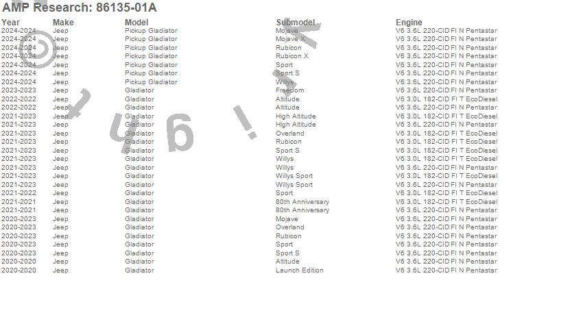 Below is an abbreviated list of applications for the PowerStep Smart Series.Gladiator, Pickup Gladiator, Jeep, 2025, 2024, 2023, 2022, 2021, 2020