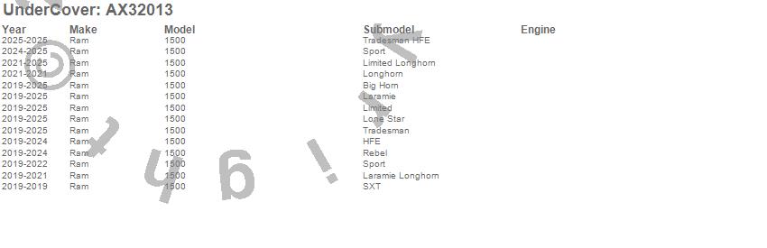 Below is an abbreviated list of applications for the Armor Flex Tonneau Cover.1500, Ram, 2026, 2025, 2024, 2023, 2022, 2021, 2020, 2019