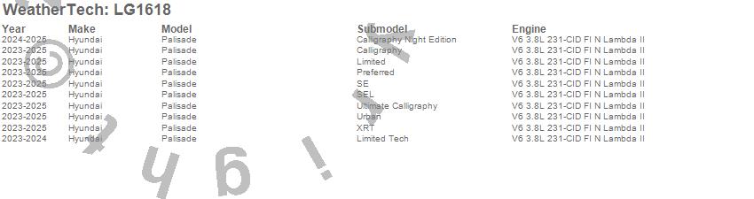 Below is an abbreviated list of applications for the LampGard.Palisade, Hyundai, 2025, 2024, 2023
