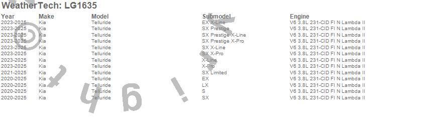 Below is an abbreviated list of applications for the LampGard.Telluride, Kia, 2025, 2024, 2023, 2022, 2021, 2020