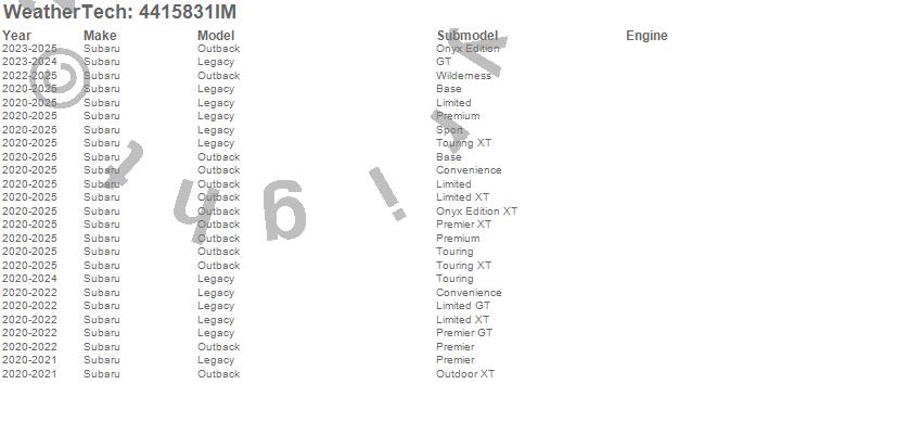 Below is an abbreviated list of applications for the FloorLiner HP.Legacy, Outback, Subaru, 2025, 2024, 2023, 2022, 2021, 2020