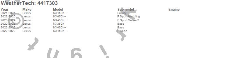 Below is an abbreviated list of applications for the FloorLiner DigitalFit.NX350h, NX450h+, Lexus, 2026, 2025, 2024, 2023, 2022