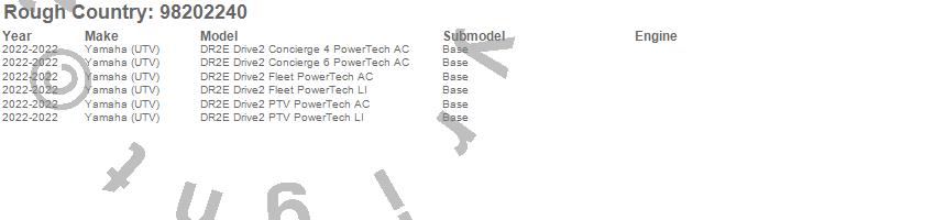 Below is an abbreviated list of applications for the Windshield.DR2E Drive2 Concierge 4 PowerTech AC, DR2E Drive2 Concierge 6 PowerTech AC, DR2E Drive2 Fleet PowerTech AC, DR2E Drive2 Fleet PowerTech LI, DR2E Drive2 PTV PowerTech AC, DR2E Drive2 PTV PowerTech LI, Yamaha (UTV), 2022