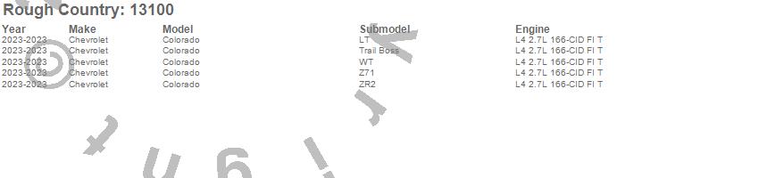 Below is an abbreviated list of applications for the Suspension Lift Kit.Colorado, Chevrolet, 2025, 2024, 2023, 2022, 2021, 2020, 2019, 2018, 2017, 2016, 2015