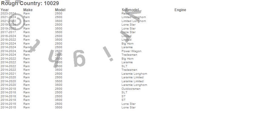 Brand: Rough CountryPart Number: 10029Suspension Air Spring Kit Type: UPC: 840269928314