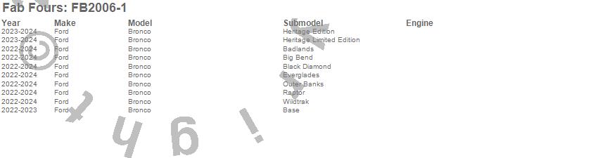 Below is an abbreviated list of applications for the Inner Fender.Bronco, Ford, 2025, 2024, 2023, 2022