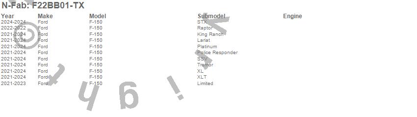 Brand: N-FabPart Number: F22BB01-TXBull Bar Type: Textured BlackUPC: 843206127429