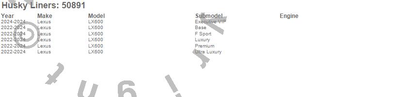 Brand: Husky LinersPart Number: 50891Floor Mat Set Type: 3rd Seat - Thermoplastic Elastomer - Black - 1 pc. - RearUPC: 753933508913