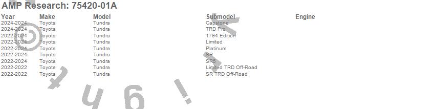 Brand: AMP ResearchPart Number: 75420-01ATruck Step Type: BlackUPC: 815410015342