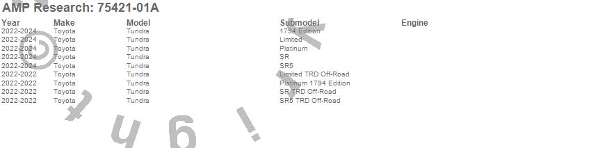 Brand: AMP ResearchPart Number: 75421-01ATruck Step Type: BlackUPC: 815410015335