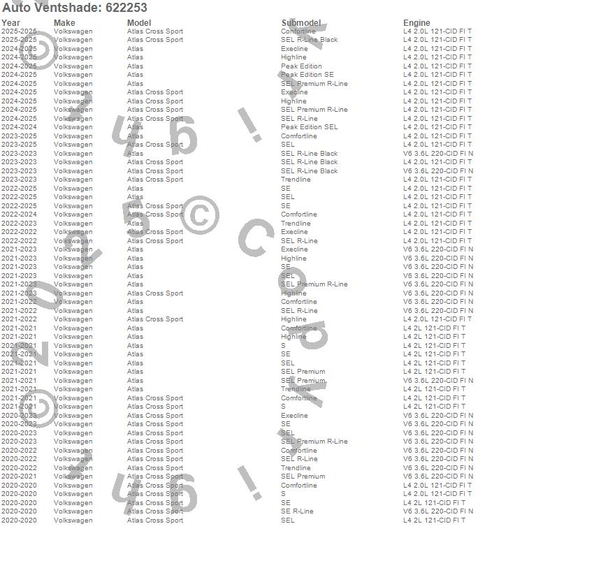 Below is an abbreviated list of applications for the Aeroskin Chrome Hood Protector.Atlas, Atlas Cross Sport, Volkswagen, 2026, 2025, 2024, 2023, 2022, 2021, 2020