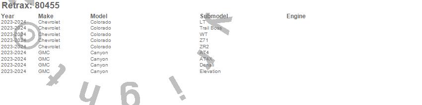 Below is an abbreviated list of applications for the RetraxPRO MX Retractable Tonneau Cover.Canyon, Colorado, Chevrolet, GMC, 2026, 2025, 2024, 2023
