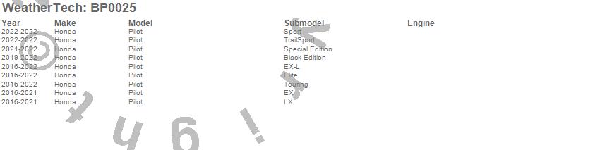 Below is an abbreviated list of applications for the BumperTopper.Pilot, Honda, 2022, 2021, 2020, 2019, 2018, 2017, 2016