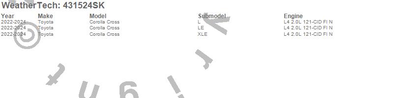 Below is an abbreviated list of applications for the Cargo Liner w/Bumper Protector.Corolla Cross, Toyota, 2026, 2024, 2023, 2022