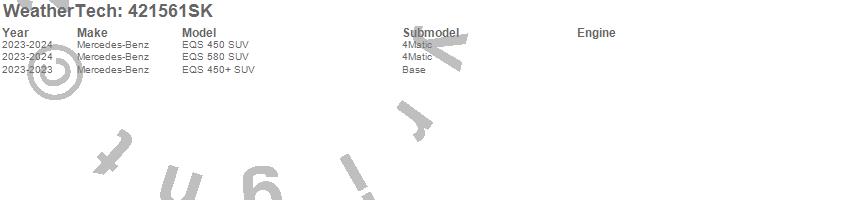 Below is an abbreviated list of applications for the Cargo Liner w/Bumper Protector.EQS 450 SUV, EQS 450+ SUV, EQS 580 SUV, Mercedes-Benz, 2025, 2024, 2023