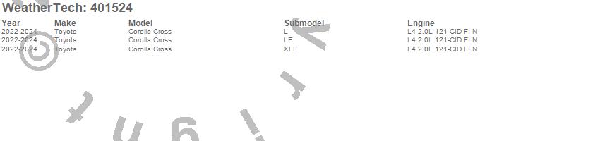 Below is an abbreviated list of applications for the Cargo Liner.Corolla Cross, Toyota, 2026, 2024, 2023, 2022