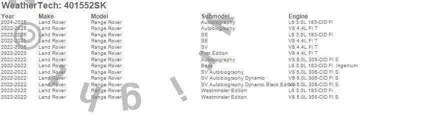 Below is an abbreviated list of applications for the Cargo Liner w/Bumper Protector.Range Rover, Land Rover, 2025, 2024, 2023, 2022
