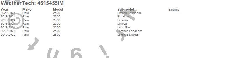 Below is an abbreviated list of applications for the FloorLiner HP.2500, Ram, 2026, 2024, 2023, 2022, 2021, 2020, 2019