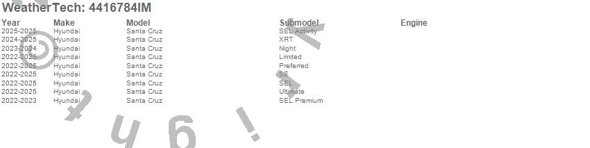 Below is an abbreviated list of applications for the FloorLiner HP.Santa Cruz, Hyundai, 2026, 2025, 2024, 2023, 2022