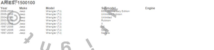 Below is an abbreviated list of applications for the Tubular Door.Wrangler (TJ), Jeep, 2006, 2005, 2004, 2003, 2002, 2001, 2000, 1999, 1998, 1997