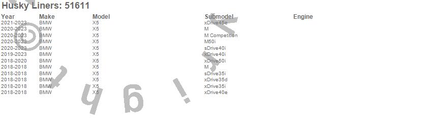Below is an abbreviated list of applications for the X-act Contour Floor Liner.X5, BMW, 2023, 2022, 2021, 2020, 2019, 2018