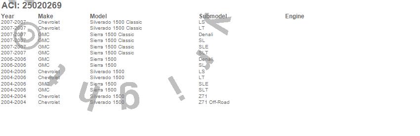 Brand: ACIPart Number: 25020269Truck Bed Mat Type: UPC: 834532004669