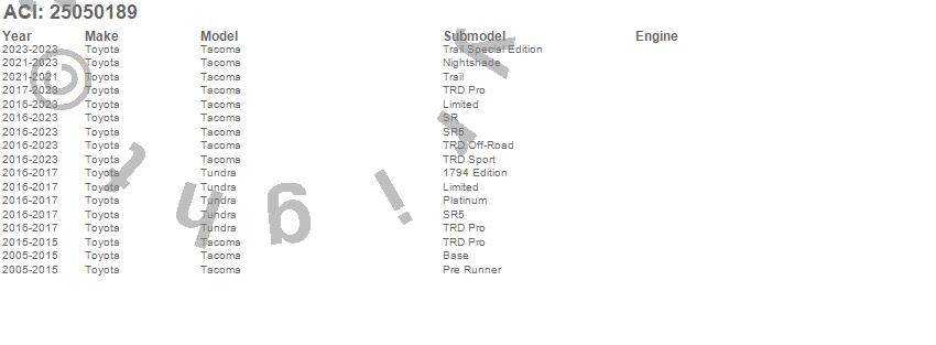 Below is an abbreviated list of applications for the ACCESS Truck Bed Mat.Tacoma, Tundra, Toyota, 2023, 2022, 2021, 2020, 2019, 2018, 2017, 2016, 2015, 2014, 2013, 2012, 2011, 2010, 2009, 2008, 2007