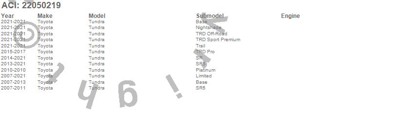 Brand: ACIPart Number: 22050219Tonneau Cover Type: Without Deck RailUPC: 834532003143