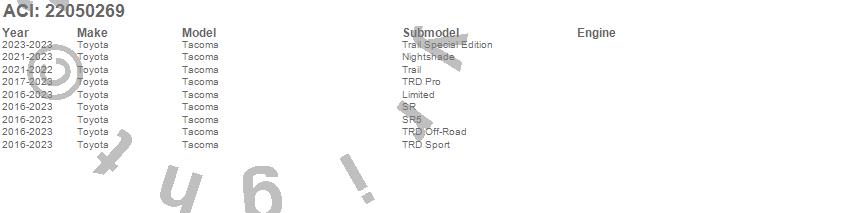 Brand: ACIPart Number: 22050269Tonneau Cover Type: UPC: 813072021749