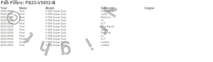 Below is an abbreviated list of applications for the Vengeance Front Bumper.F-250 Super Duty, F-350 Super Duty, Ford, 2025, 2024, 2023