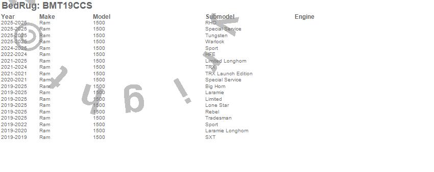 Below is an abbreviated list of applications for the BedRug Floor Truck Bed Mat.1500, Ram, 2025, 2024, 2023, 2022, 2021, 2020, 2019