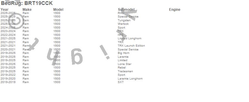 Below is an abbreviated list of applications for the BedRug Complete Truck Bed Liner.1500, Ram, 2025, 2024, 2023, 2022, 2021, 2020, 2019