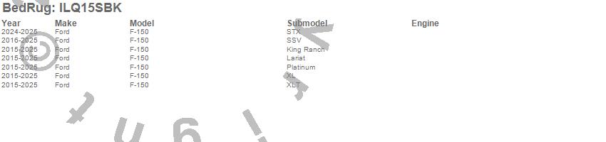 Brand: BedRugPart Number: ILQ15SBKTruck Bed Liner Type: For Use w/Spray On Bed Liner And Non Liner ApplicationsUPC: 870558006935