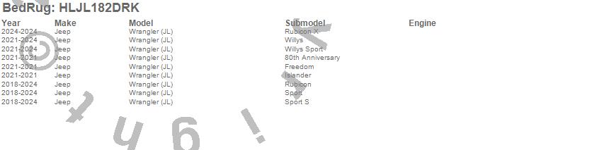 Brand: BedRugPart Number: HLJL182DRKHeadliner Type: 4 pc. Kit - Intended For Hard TopUPC: 870558097292