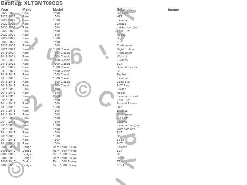 Below is an abbreviated list of applications for the XLT Mat.1500, 1500 Classic, Ram 1500, Dodge, Ram, 2024, 2023, 2022, 2021, 2020, 2019, 2018, 2017, 2016, 2015, 2014, 2013, 2012, 2011, 2010