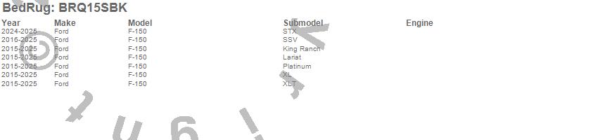 Below is an abbreviated list of applications for the BedRug Complete Truck Bed Liner.F-150, Ford, 2025, 2024, 2023, 2022, 2021, 2020, 2019, 2018, 2017, 2016, 2015