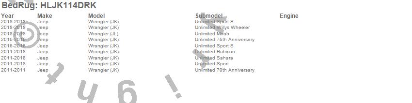 Below is an abbreviated list of applications for the BedRug Headliner Kit.Wrangler (JK), Wrangler (JL), Jeep, 2018, 2017, 2016, 2015, 2014, 2013, 2012, 2011