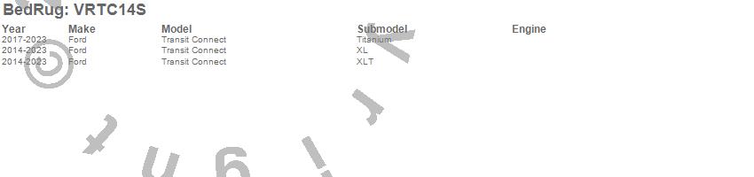 Below is an abbreviated list of applications for the VanRug Cargo Mat.Transit Connect, Ford, 2023, 2022, 2021, 2020, 2019, 2018, 2017, 2016, 2015, 2014