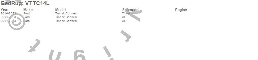 Below is an abbreviated list of applications for the VanTred Cargo Mat.Transit Connect, Ford, 2023, 2022, 2021, 2020, 2019, 2018, 2017, 2016, 2015, 2014