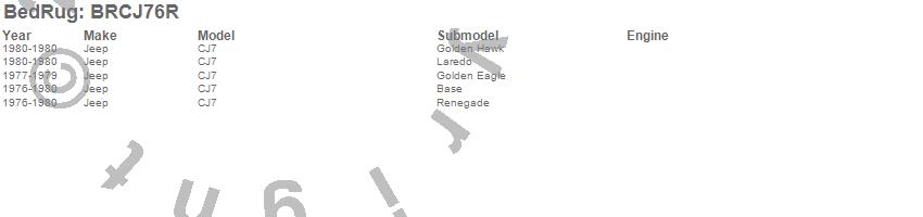 Below is an abbreviated list of applications for the BedRug Floor Kit.CJ7, Jeep, 1980, 1979, 1978, 1977, 1976