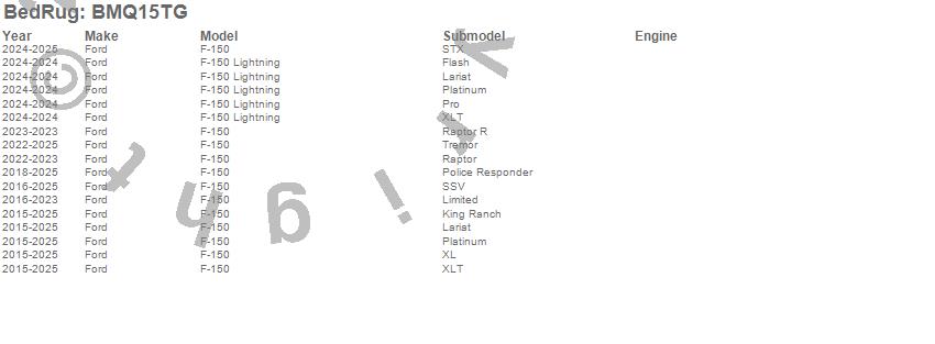 Below is an abbreviated list of applications for the BedRug Tailgate Mat.F-150, F-150 Lightning, Ford, 2025, 2024, 2023, 2022, 2021, 2020, 2019, 2018, 2017, 2016, 2015
