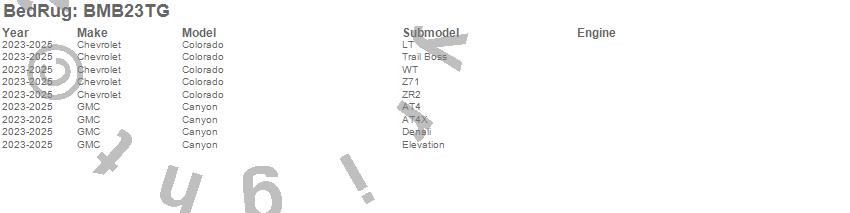 Below is an abbreviated list of applications for the BedRug Tailgate Mat.Canyon, Colorado, Chevrolet, GMC, 2025, 2024, 2023