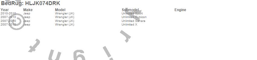 Below is an abbreviated list of applications for the BedRug Headliner Kit.Wrangler (JK), Jeep, 2010, 2009, 2008, 2007